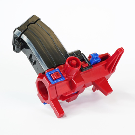 The Beat Launcher is a top-loading synchro weapon fitted with a magazine similar to the Loading Magazine, with a capacity of four consecutive shots. The magazine features a lid that covers the loading port, in order to prevent marbles from spilling back out of the port during firing. Like all synchro weapons, it is designed to fire simultaneously with the B-Daman equipping it, via a mechanical connection between the weapon's trigger and the B-Daman's trigger grip. The Beat Launcher shares a core with the Tactical Shot, with the magazine as a separate piece. This allows construction of the Hybrid Cannon by attaching both the Beat Launcher's magazine and the Tactical Shot's barrel to the same weapon core.