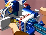 Cobalt Blaster includes a Cartridge Trigger that can be changed between two modes by means of a simple sliding mechanism: Single or Cartridge Shot. As its name suggests, the Single Shot Mode can only fire one B-Dama at a time (like most B-Daman in the older Zero and Blaster Core Systems). The Cartridge Shot Mode, however, allows one to shoot two B-Dama (Whether a standard one and a Strike Shot and vice-versa) at a time by means of the bullet casing-like Cartridge; great for a small emulation of Rapid Fire-Type B-Daman or a surprise attack. However, this gimmick still shares the same weakness as Rapid Fire-Types, in which accuracy is hindered as a result.