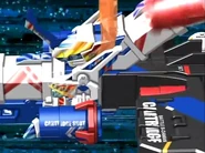 As the first Cartridge System B-Daman, Cobalt Blaster's Cartridge Helmet is separate from the body and is placed manually; like with the Blaster Core System. Of course, this Cartridge Helmet, the Blaster Sight, does not fail to resemble the previous Cobalt models. Complete with its signature, blue horn for aiming and some hot-rod-flame stickers with "BATTLE B-DAMAN" around the piece, it is finalized with its blue-eye decals; albeit emulating a rather serious outlook when compared to its previous iterations.