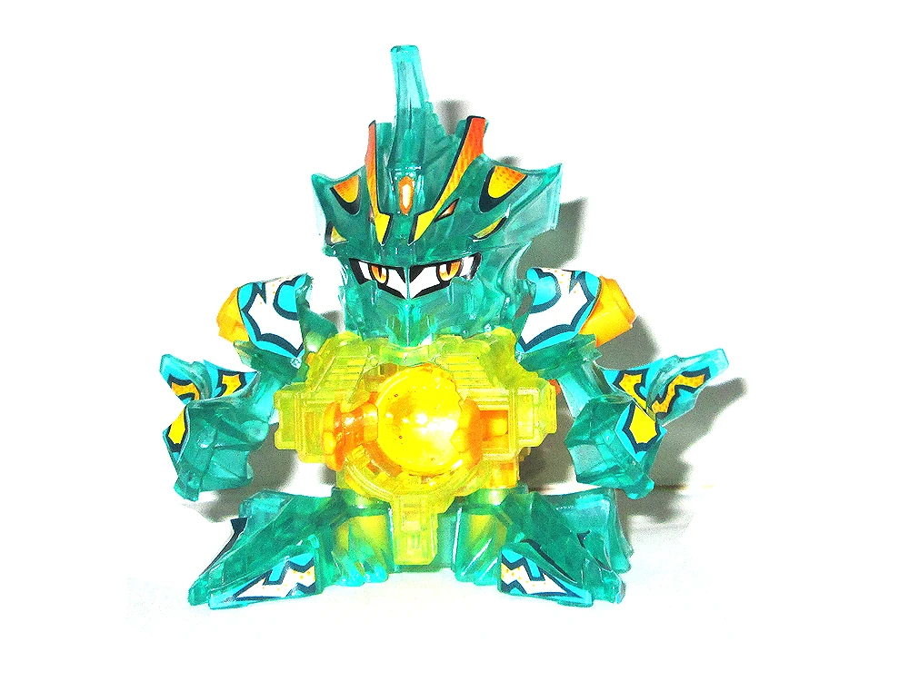 With a dragon-inspired design, this Head Part appears as a dragon head wearing a helmet. The helmet extends left and right, carrying an upward slope as well. A horn sits atop the helmet, raised and curved in order to better handle one's grip to the B-Daman. Two spiked straps stick to the B-Daman's face, ending the helmet. Its dragon face offers anime-like violet eyes with a black pupil and white eyelids. The impression of a chin is also left, slightly curved.
